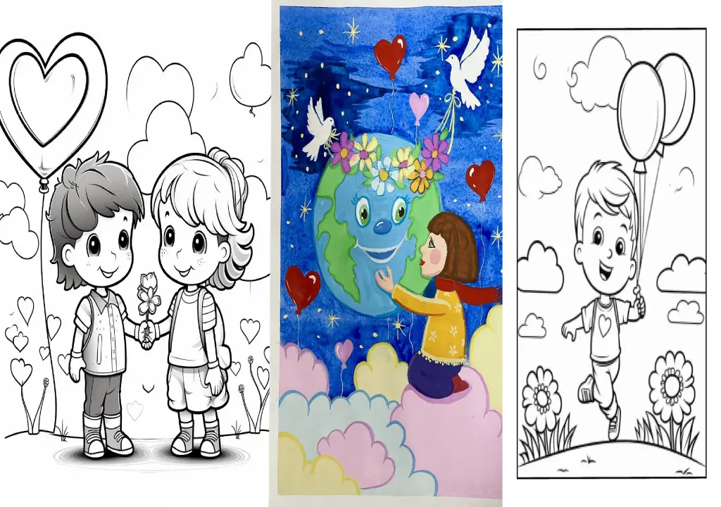 50 نقاشی روز جهانی کودک برای رنگ آمیزی