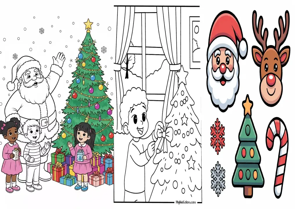 60 نقاشی بابانوئل، کریسمس و درخت کریسمس برای رنگ آمیزی